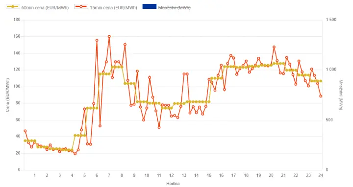 Zásadní tržní změnou v roce 2025 bylo zavedení kratšího obchodního intervalu na denním trhu. Od dodávky 1. října 2025 přešel jednotný propojený denní trh EU z hodinových na 15minutové obchodní intervaly (MTU – Market Time Unit. Česká republika se k této změně připojila v rámci celoevropské koordinace Single Day-Ahead Coupling (SDAC). Na spotovém trhu se tak nově stanovuje cena každých 15 minut místo jednou za hodin, což lépe odráží reálné křivky výroby a spotřeby elektřiny v kratších úsecích.